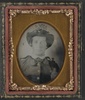 Unidentified soldier in uniform with musket, canteen, cup, and haversack; either Confederate or Union