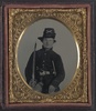 Unidentified soldier in Union frock coat and Hardee hat with Model 1860 Light Cavalry saber and Colt Army Model 1860 revolver