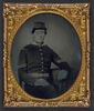 Unidentified soldier in Union cavalry uniform and shoulder scales with saber