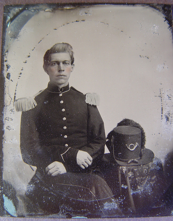 Unidentified soldier in Union uniform and epaulettes with infantry Hardee hat