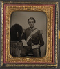Unidentified soldier in Co. I, 6th Massachusetts Infantry Regiment (Lawrence Light Infantry) uniform and Massachusetts state seal breastplate with bearskin hat