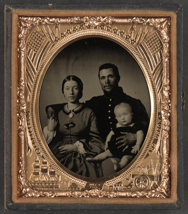 Unidentified soldier in Union uniform, unidentified woman, and unidentified baby / Newcomer's Gallery, 508 No. 2nd St., Phila.