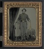 Two unidentified soldiers in Union uniforms with unidentified woman