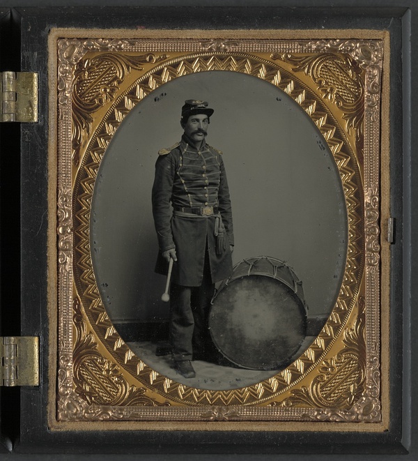 Unidentified cavalry soldier in Union uniform with bugle and sword