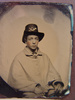 Unidentified soldier in Union uniform with greatcoat and Hardee hat