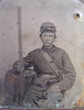 Unidentified soldier in Union uniform with bayoneted musket, cartridge box, and cap box