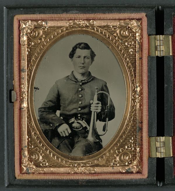 Unidentified soldier in Confederate uniform with large Bowie knife