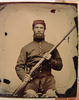 Unidentified soldier in Union uniform and eagle breast plate with bayoneted musket, cap box, and bayonet scabbard