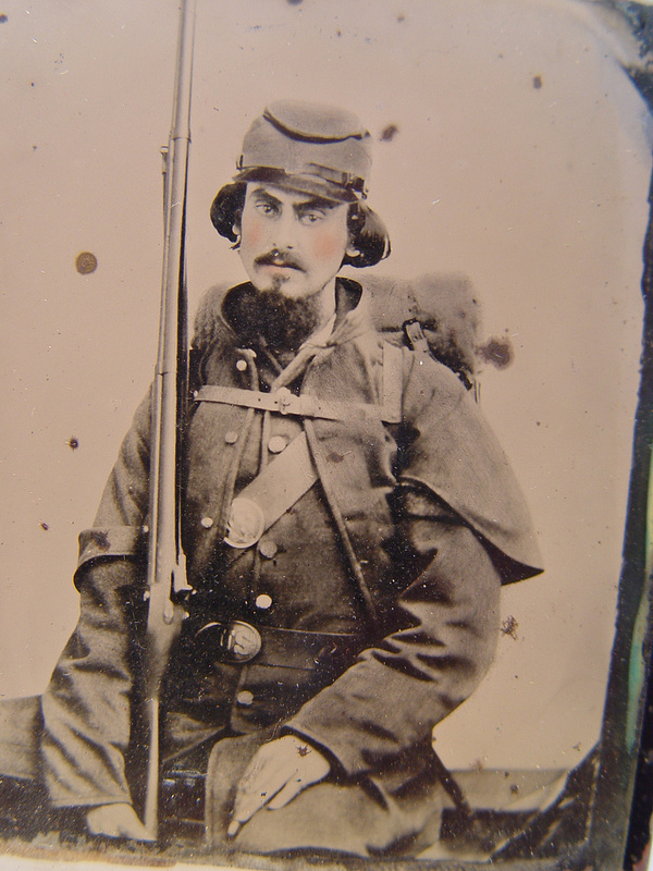 Private William F. Bower of Company D, 21st Ohio Regiment Infantry Volunteers, with bayoneted musket