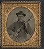 Unidentified soldier in Confederate uniform with Berdan's Sharps rifle and Colt 1862 Police Model pistol
