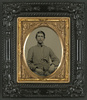 Unidentified soldier in Confederate uniform with percussion pistol
