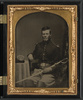 Unidentified soldier in Union uniform and unidentified man with full beard in fur hat
