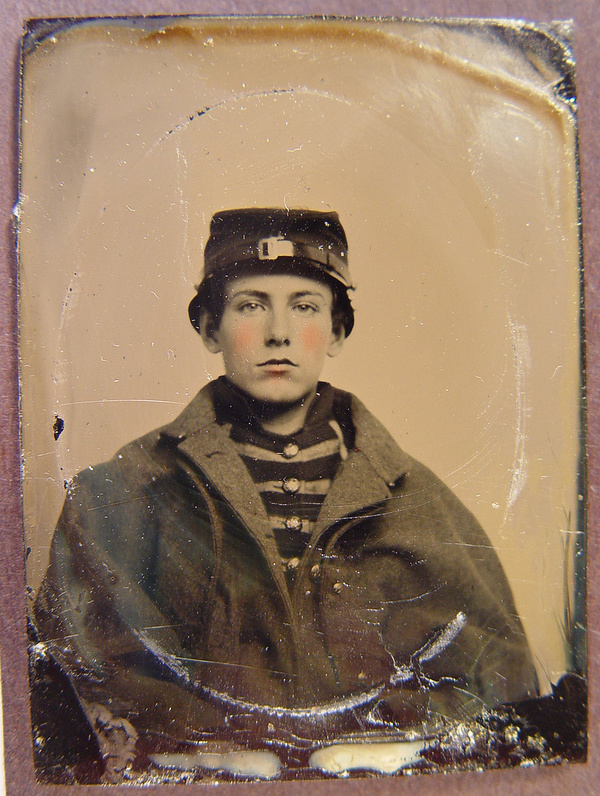 Unidentified soldier in Union uniform with musket, bayonet, and cartridge box
