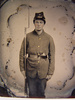 Unidentified soldier in Union uniform and Company D forage cap with a bayoneted musket and revolver