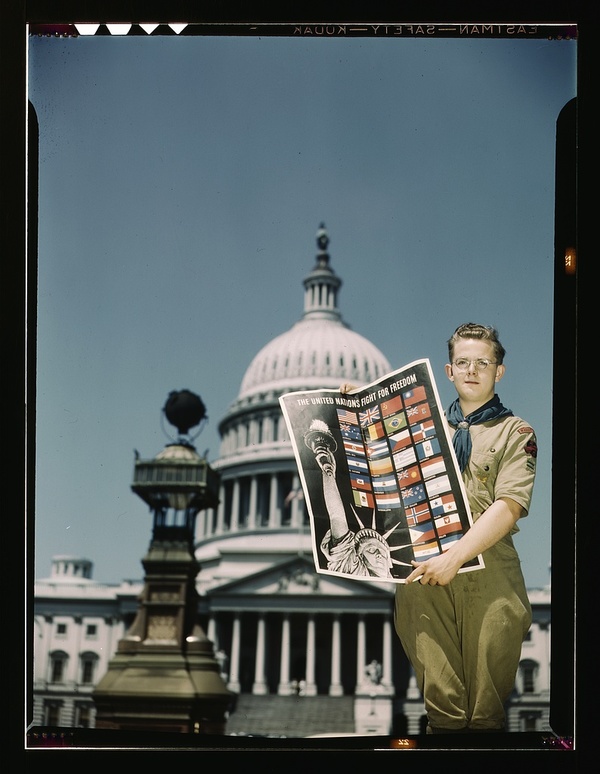 United Nations Fight for Freedom: Boy Scout in front of Capitol. They help out by delivering posters to help the war effort