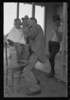 Untitled photo, possibly related to: Community barber shop in Kern County migrant camp, California
