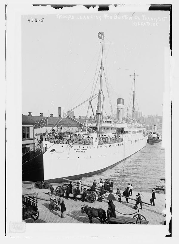 Troops for Boston aboard U.S. Army transport "Kilpatrick"