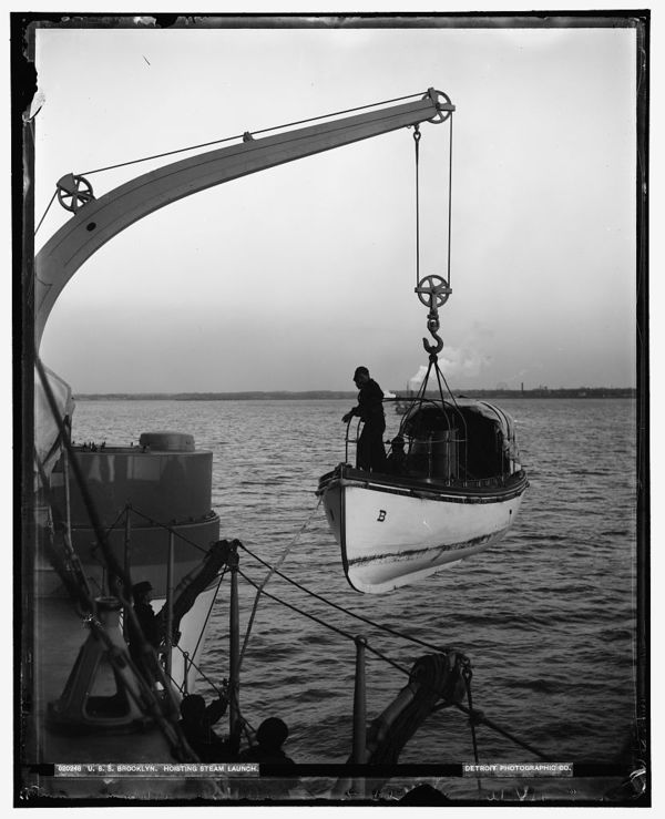 U.S.S. Brooklyn, hoisting steam launch