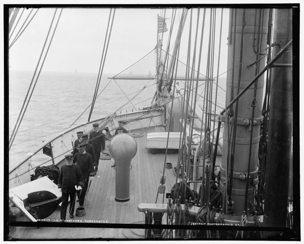 U.S.S. Hartford, gun drill, looking aft., starboard side