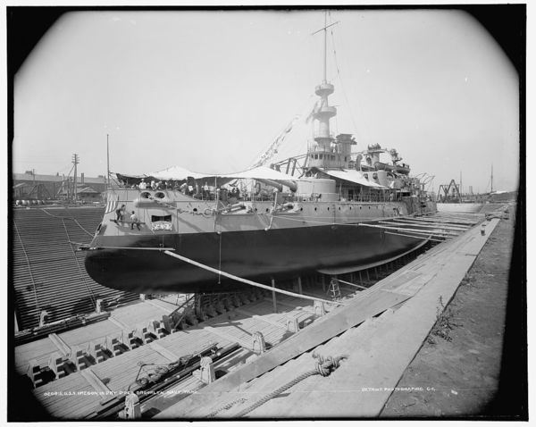 U.S.S. Oregon in dry dock, Brooklyn Navy Yard
