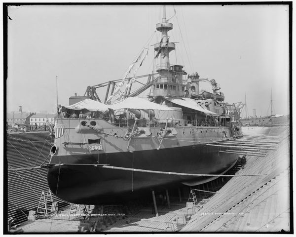 U.S.S. Oregon in dry dock, Brooklyn Navy Yard