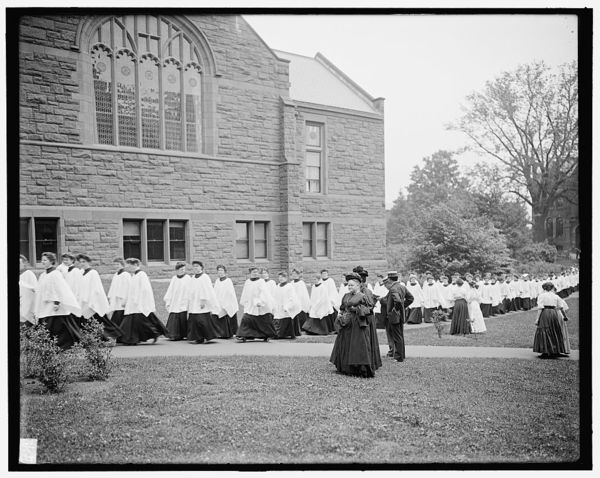 Vested choir marching to chapel, Mount Holyoke College, South Hadley, Mass.
