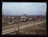 The freight house at a Chicago and Northwestern Railroad yard. In the foreground are old cars used as living quarters for some yard workers and itinerant help; Chicago, Ill.