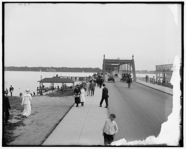 View of Belle Isle Bridge in Detroit, taken from East Jefferson Avenue and looking toward Belle Isle