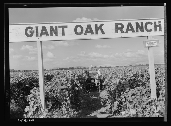 Vineyard during harvest. Large-scale farming. Tulare County, California