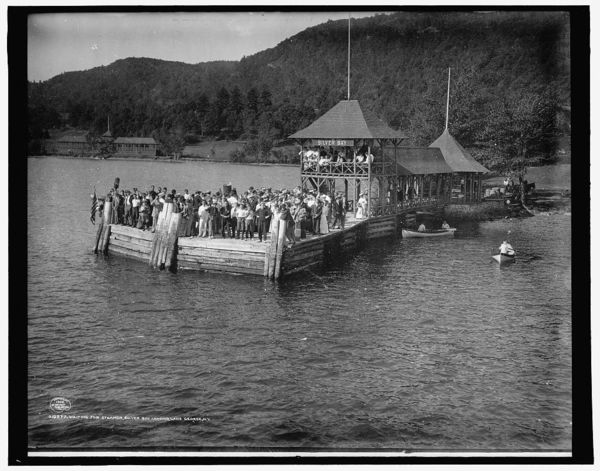 Waiting for steamer, Silver Bay landing, Lake George, N.Y.