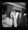 Chicago, Illinois. A girl passenger waking up as the Greyhound bus comes into the city. She came from Knoxville, Tennessee, and is going to Minneapolis to visit a boy in the Army