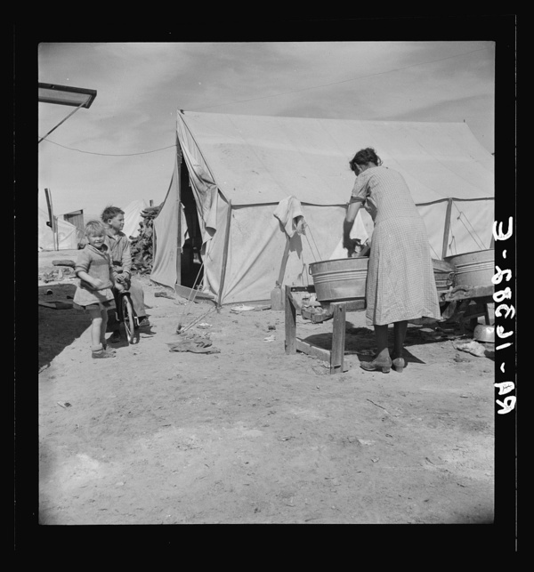 Washing facilities for families in migratory pea pickers' camp. Imperial Valley, California. Mostly Oklahomans and Texans