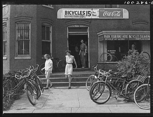Washington, D.C. A bicycle rental shop on 22nd Street, near Virginia Avenue N.W., on Sunday