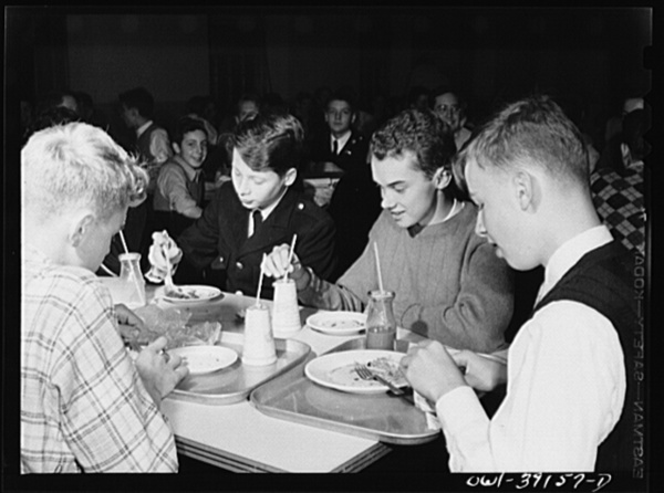 Washington, D.C. A boys' table at the student cafeteria at Woodrow Wilson High School