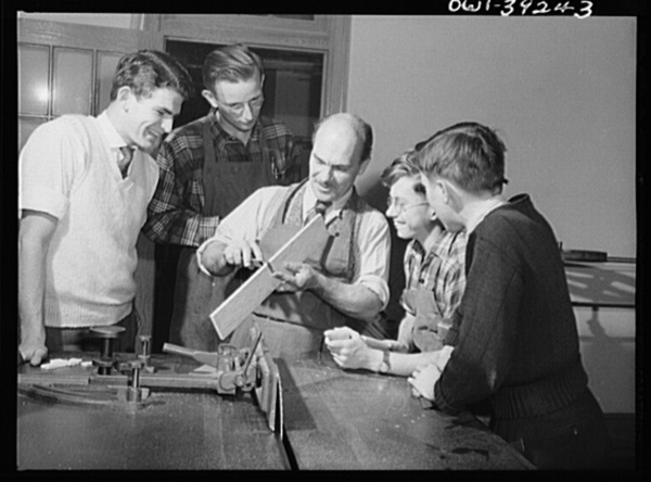 Washington, D.C. A class in wood shop at Woodrow Wilson High School