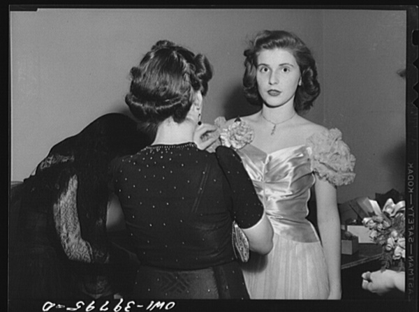 Washington, D.C. A Woodrow Wilson High School faculty member pinning a corsage for a student at the regimental ball