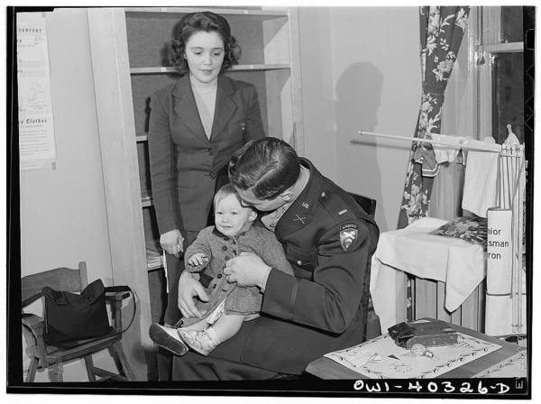 Washington, D.C. A young couple picking up their child who was taken care of in the nursery at the United Nations service center while they spent the day shopping