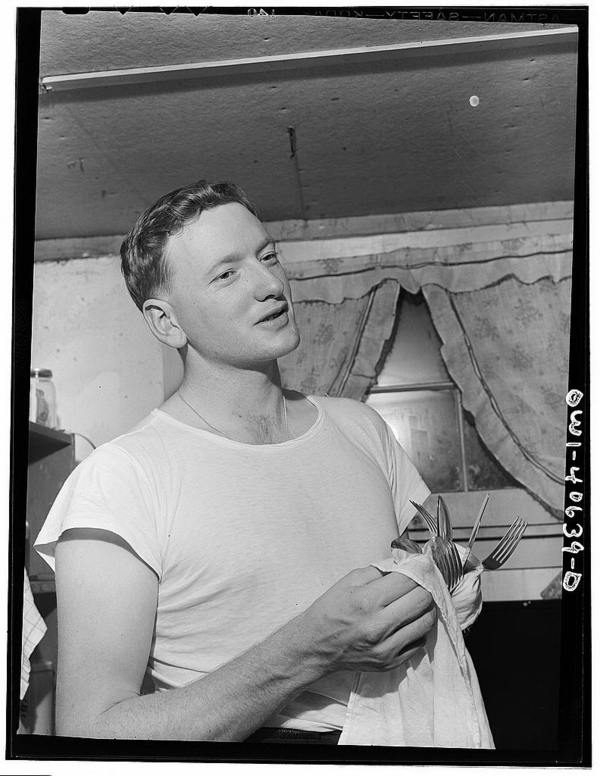 Washington, D.C. After dinner, Hugh Massman, a second class petty officer studying in Washington, does the dishes while Lynn feeds the baby