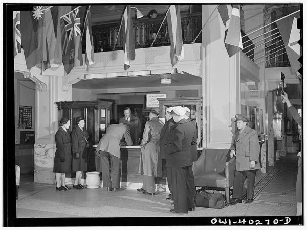 Washington, D.C. Civilian visitors to the United Nations service center must get a pass at this desk in the front lobby