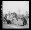Washington, D.C. Applying a splint to a "broken" leg as part of a course in first aid, aboard a Potomac River boat