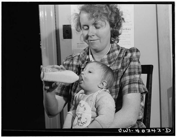 Washington, D.C. Child being fed at the nursery in the United Nations service center