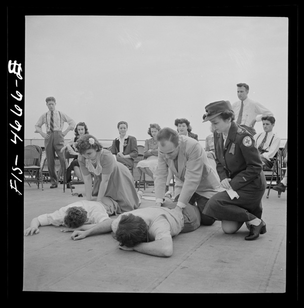 Washington, D.C. First aid class held daily by the Red Cross aboard a Potomac riverboat which carries workers to Port Washington every morning. They are civilian employees of the U.S. Army adjutant general's office
