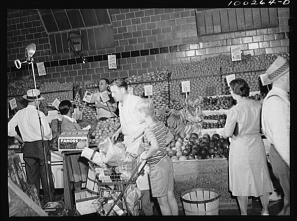 Washington, D.C. Fruit counter in the Giant Food shopping center on Wisconsin Avenue