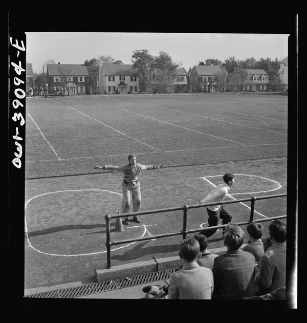 Washington, D.C. Georgetown Preparatory School cheerleader in action. His team is opposing that of Woodrow Wilson High School