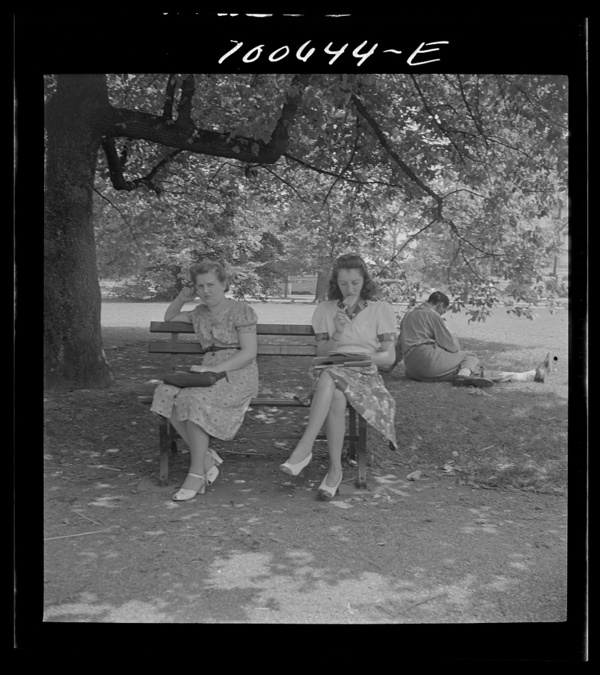 Washington, D.C. Government workers lunching and resting in Washington Monument park outside the U.S. Department of Agriculture