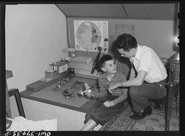 Washington, D.C. Walter Spangenberg, a student at Woodrow Wilson High School, showing a prize-winning plane to his nine-year-old brother