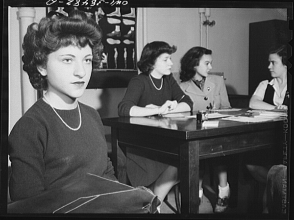 Washington, D.C. In a health education class, students in turn submit their personality problems to a panel, which leads a class discussion. The girl in the foreground is the subject of discussion. Woodrow Wilson High School