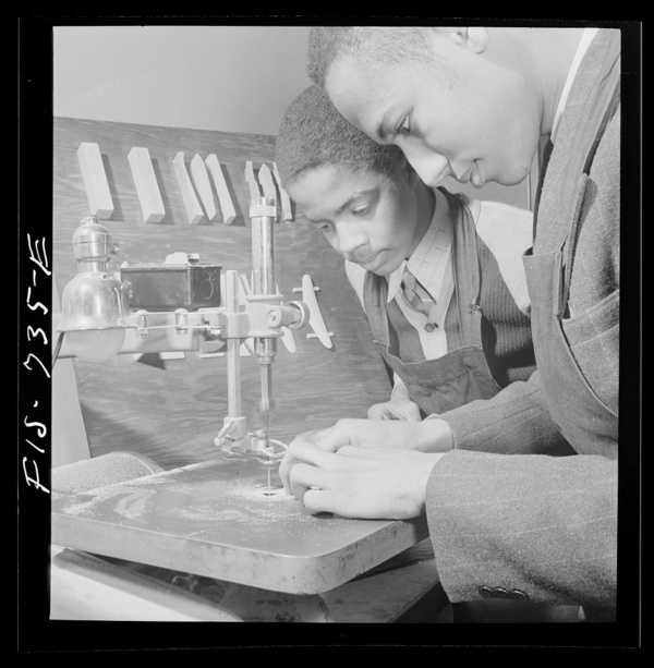 Washington, D.C. Learning to use an electrical jigsaw to make model airplanes for the U.S. Navy at the Armstrong Technical High School
