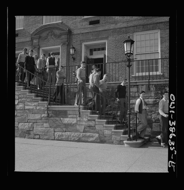 Washington, D.C. Leaving the school building after a fire drill at Woodrow Wilson High School