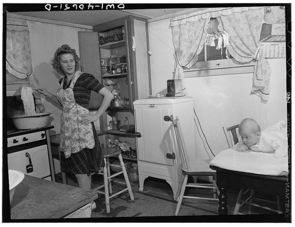 Washington, D.C. Lynn Massman, wife of a second class petty officer who is studying in Washington, squeezing orange juice for her young son